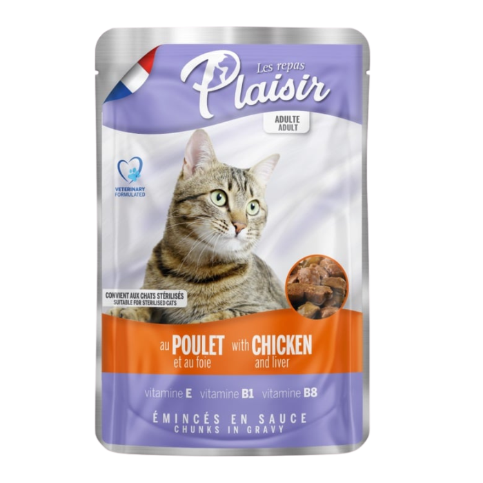 Ingrediente:Carne si produse de origine animala, (pui 4%, ficat 4%), derivate de origine vegetala, extracte de proteine vegetale, minerale. Constituenti analitici: Proteine brută 9%, Grăsimi brute 5%, Fibră brută 0.8 %, Cenusa 2%, Umiditate 82%.