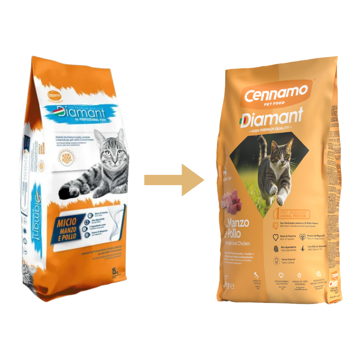 COMPOZIȚIE: Proteine animale deshidratate (pui si vita 30%), orez, porumb, grâu dur ancestral, grasime de pui 4%, ulei de somon 1%, pulpa de sfecla, pulpa de cicoare (sursa de inulina), proteine animale hidrolizate, substante