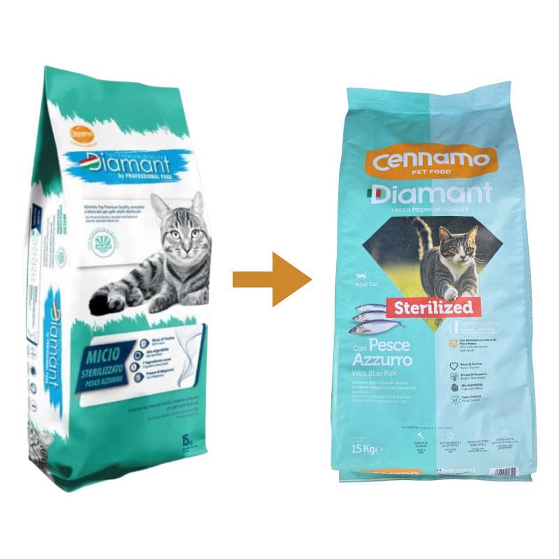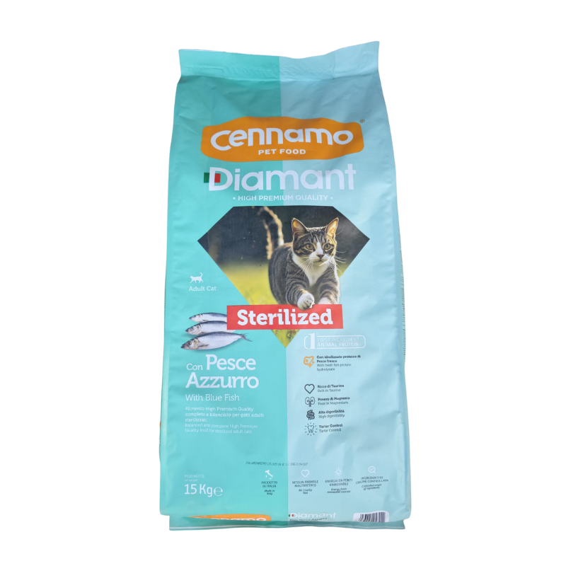 Cennamo Hrana uscata pentru pisici Cennamo Diamant Steril, Peste, 15kg + CADOU