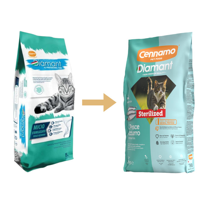Cennamo Hrana uscata pentru pisici Cennamo Diamant Steril, Peste, 2kg