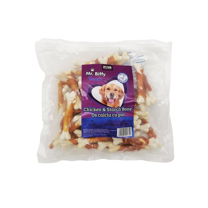 Ingrediente: Amidon 55%, Carne pui 38.5%, Sorbitol, Glycerol, Sare